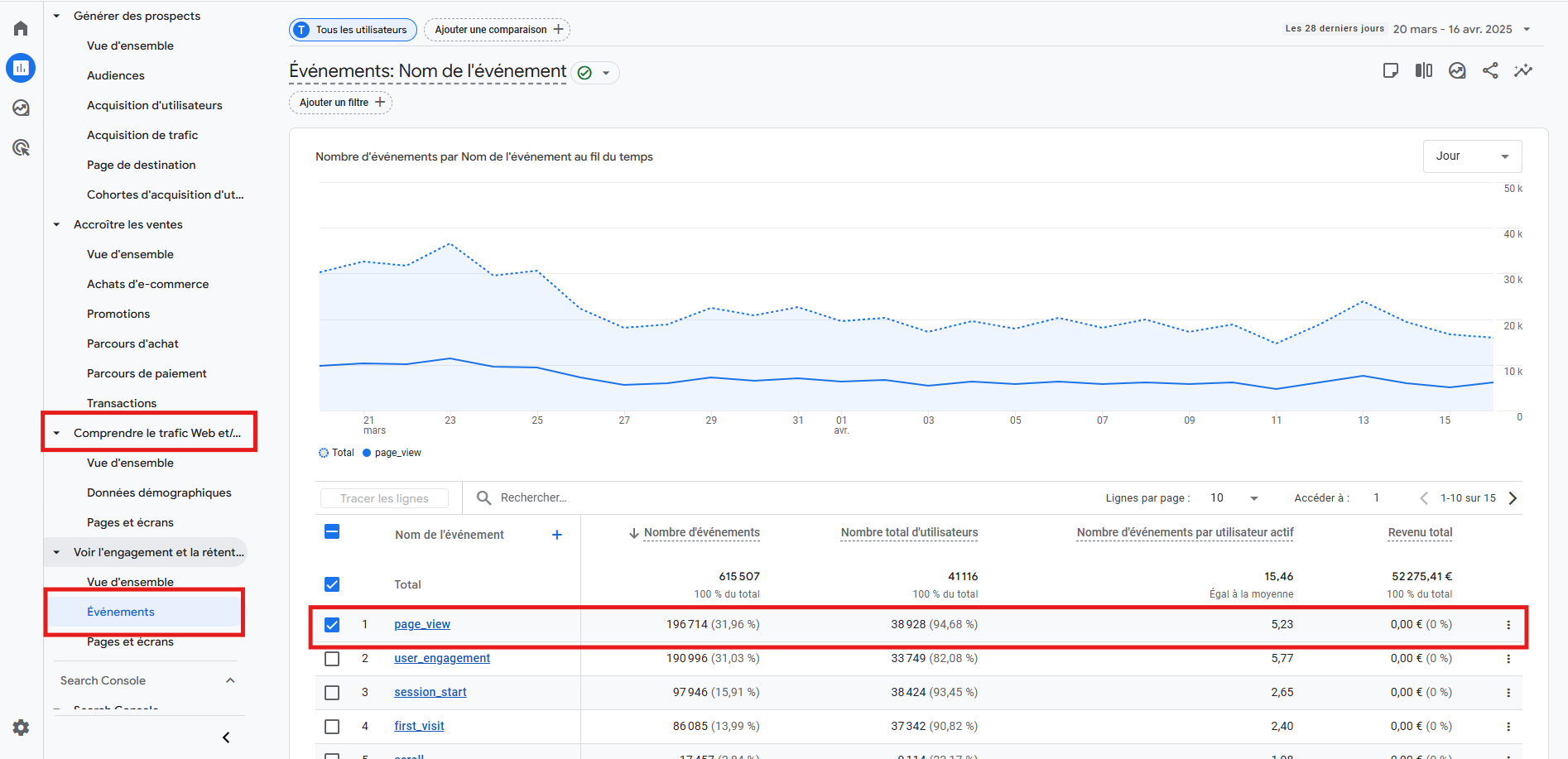 * Rapports > Engagement > Evénements > Page view