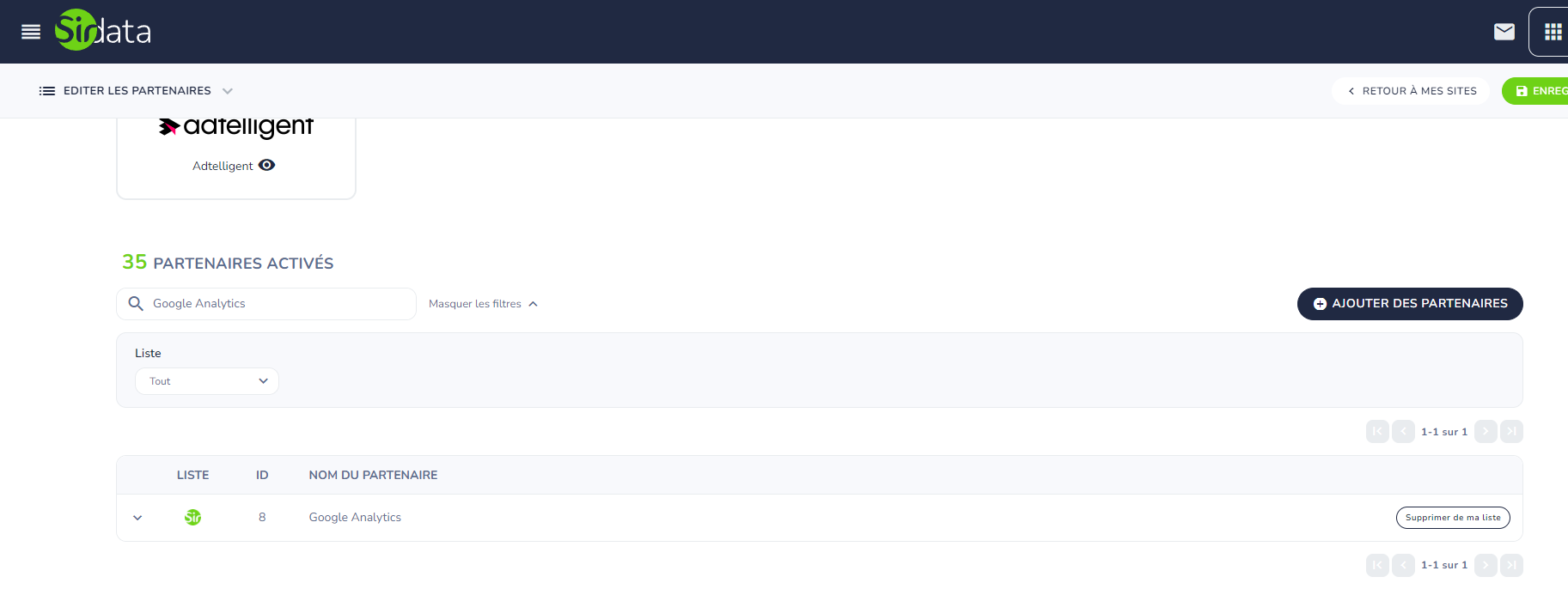Assurez-vous que le partenaire Google Analytics (ID : 8) est bien activé dans votre liste de partenaire :&#x20;